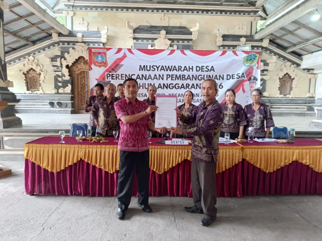 Pada hari Selasa 24 Juni 2025 Telah di selenggarakan Musyawarah Desa Perencanaan Pembangunan Tahun Anggaran 2026 rapat ini di hadiri oleh Camat Abang, Pendamping Desa, BPD, Perangkat Desa, LPM, PKK, Kader Posyandu, Anggota BUMDES, Anggota Kopdes, dan Tokoh Masyarakat.
